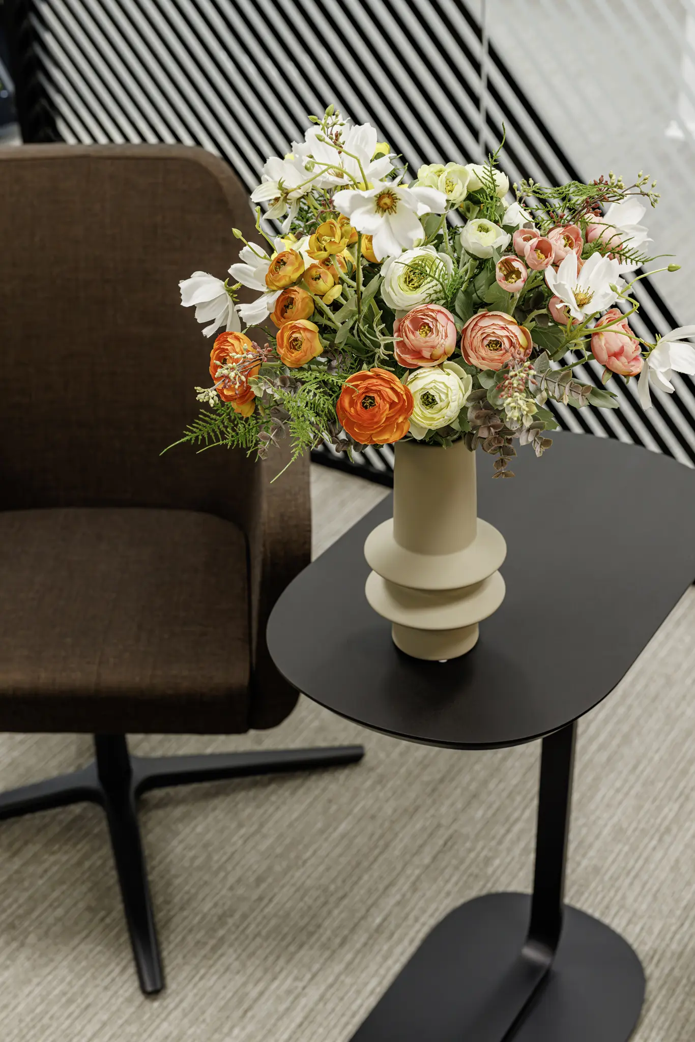 Et arbejdsmiljø med blomster føles mere imødekommende og levende. Det er ikke bare en æstetisk tilføjelse – det er en stemningsskaber, der påvirker både trivsel og udtryk. Blomster tilfører rummet varme og blødhed og skaber balance i moderne kontorindretninger, hvor hårde materialer og rene linjer ofte dominerer.