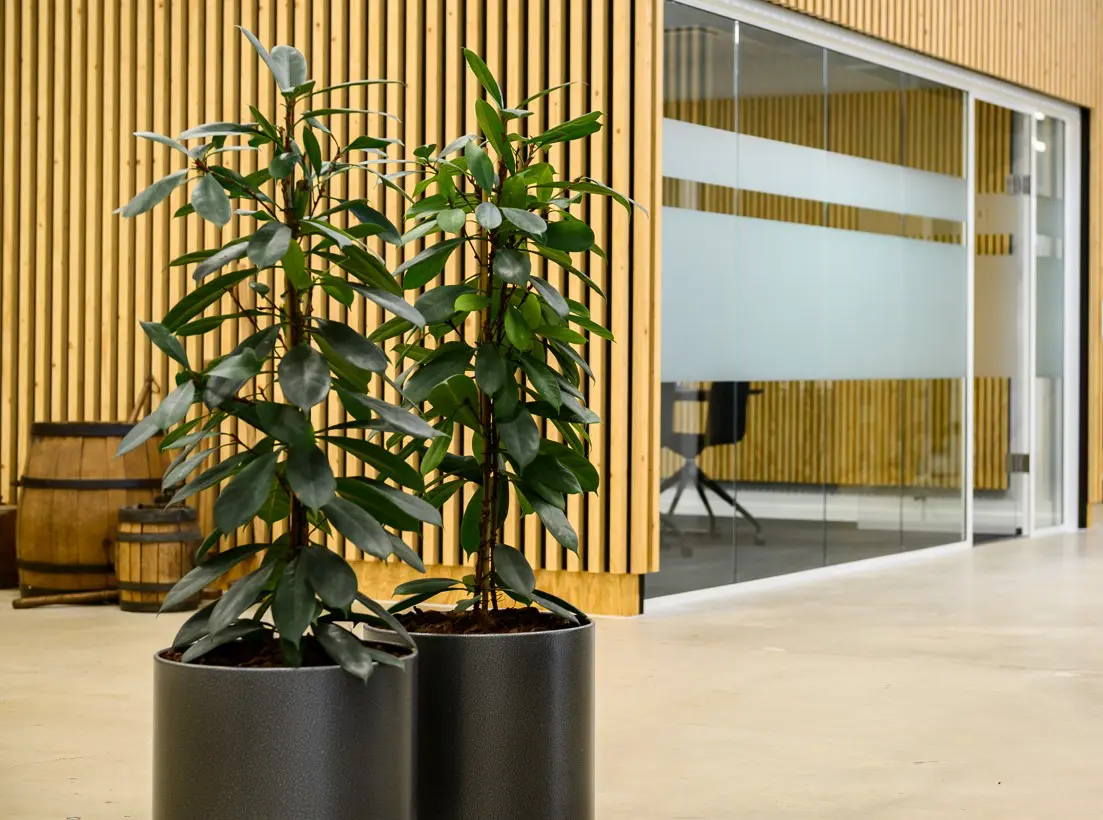 For store virksomheder med åbne kontorlandskaber kan vi foreslå brug af større planter som naturlige rumdelere. Dette giver ikke kun en følelse af privathed, men skaber også et grønt og afslappende miljø. Vi kan rådgive jer om valg af planter, som egner sig godt til dette formål.